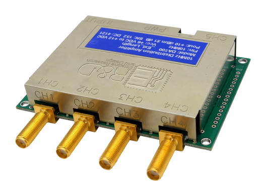This page features the DA500-D model from our DA500 series of distribution amplifiers, equipped with panel-mount SMA connectors on the front an...